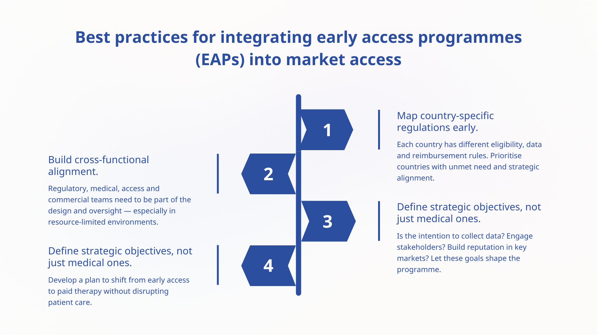 • Market access to identify where EAPs align with the pharma pricing strategy and reimbursement goals.